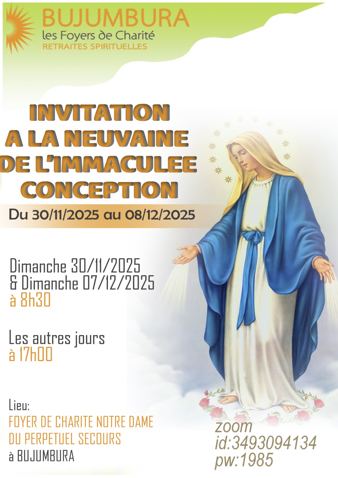 Père WAKANA J Bosco Nouvelles & Evénements Nov 26 / 0 Comments INVITATION A LA NEUVAINE DE L'IMMACULEE CONCEPTION 2025 Articles de la même catégories Le Père et moi nous sommes un. Père WAKANA J Bosco Homélies Apr 28 Messe des Brebis de Jesus Je suis le bon pasteur Père WAKANA J Bosco Apr 26 Hom Qui mange ma chair et boit mon sang demeure en moi et moi en lui , dit le Seigneur mp3 Père WAKANA J Bosco Homélies Apr 24 Ntawushobora kunyegera Data atamukwegakweze. Père WAKANA J Bosco Homélies Apr 23 Hom Je suis le pain de vie Père WAKANA J Bosco Homélies Apr 22 Hom ce n’est pas Moïse qui vous a donné le pain venu du ciel ; c’est mon Père qui vous donne le vrai pain venu du ciel. Père WAKANA J Bosco Homélies Apr 21 Ajouter un commentaire Votre nom Objet Commentaire À propos des formats de texte Restricted HTML Vous pouvez aligner les images (data-align="center"), mais également les vidéos, citations, etc. Vous pouvez légender les images (data-align="center"), mais également les vidéos, citations, etc.